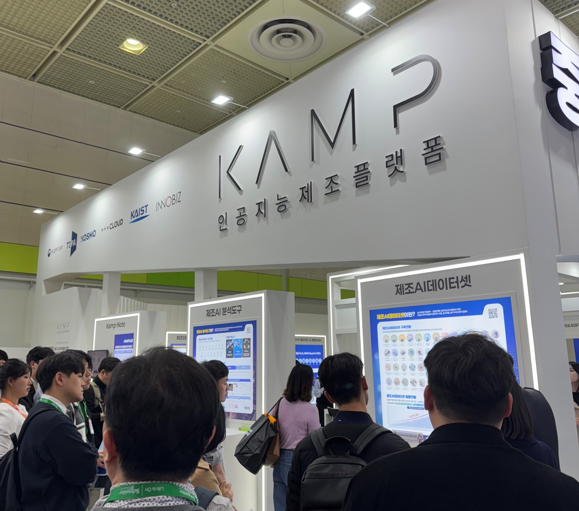 KAIST, TIPA, 중소기업기술정보진흥원 등이 참여한 ‘KAMP’ 부스에서는 제조 AI 학습용 데이터셋, 시뮬레이터, 분석 툴 등이 소개되었습니다.